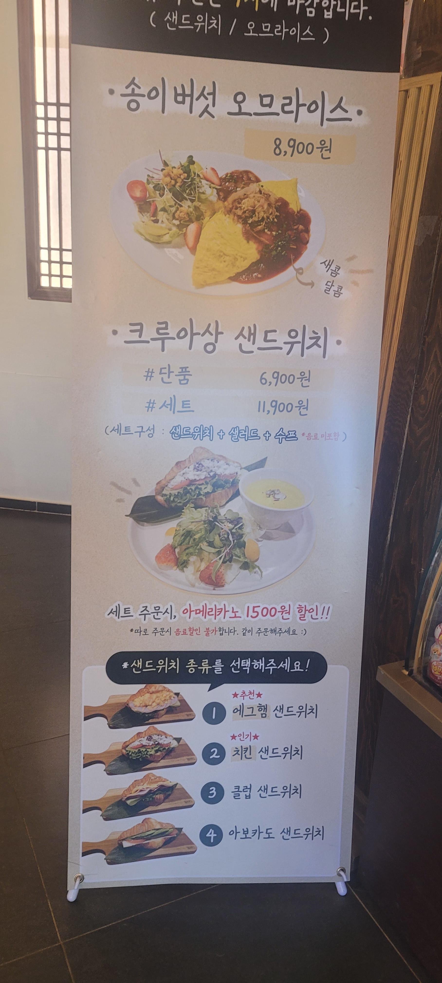 여기는 송이버섯 오므라이스가 유명하더라구요~ 그리고 저기 크루아상 샌드위치도 함께 시켜보았는데 단호박죽이 아주 맛있다고 해서 저기 보이는 저 두가지를 메뉴를 시켰답니다.^^